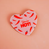 This sizzling trio includes our six-piece Salted Caramel Macaron box, the Vanilla Heart Biscuit, and a box of five of our signature fudgy Chocolate Brownies. United by our playful red and pink chilli designs and bold 'You're Hot' messaging, this coordinated collection is designed to make a serious impact.